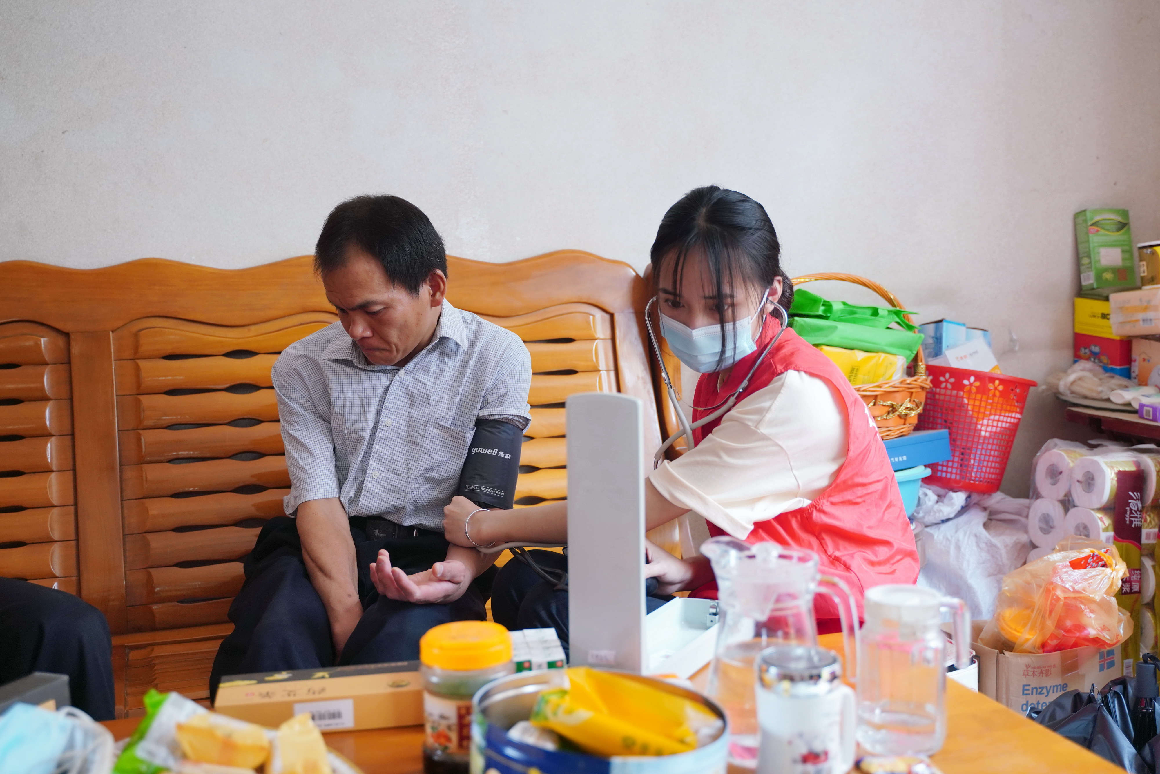志愿者为居民测量血压