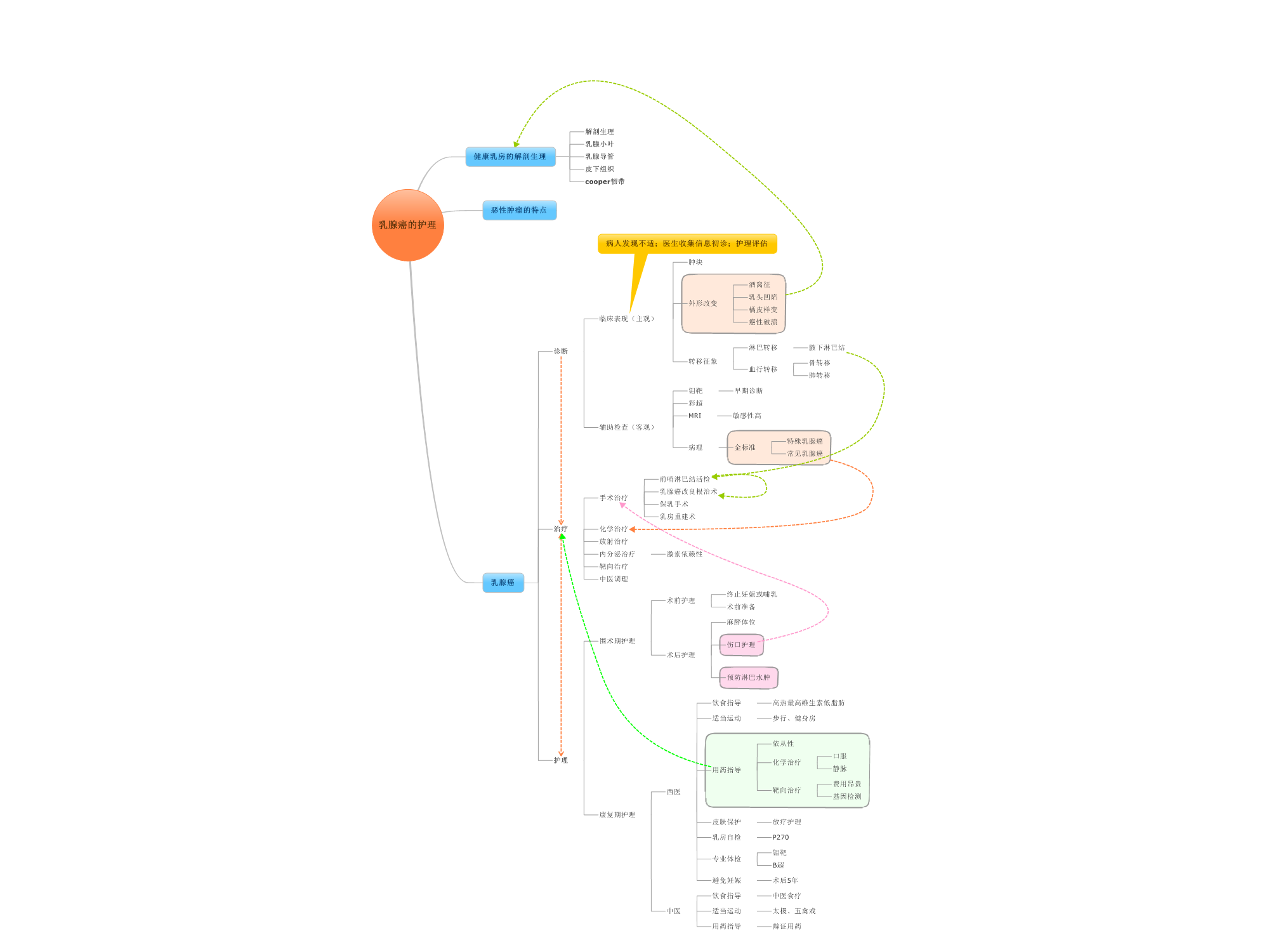 根据思维导图,逐步将解剖、病理、健康评估等知识提取并整合,理解记忆乳腺癌临床表现。 (四)循序渐进