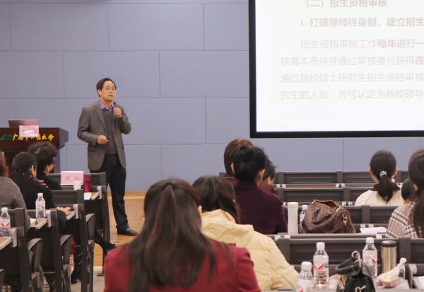 在培训班中,研究生院院长唐梅文教授以“新形势下如何做一个合格的研究生导师”为题,介绍了当前研究生导师队伍建设新形势,强调了新形势下导师要做到德才兼备、具有强烈的责任感、注重学生综合素质的提升、把握好培养的基本环节及提升自身学术和教育水平。杨连招教授从“对高素质护理人才培养的思考”出发,介绍了高素质护理人才培养的现状,分析了社会对高素质护理人才的需求,提出了高素质护理人才培养的路径。北京协和医学院刘华平教授结合北京协和医学院护理硕士专业学位研究生的培养经验,阐述了护理硕士专业学位基本要求、培养方案及核心能力,探讨了护理硕士专业学位研究生培养中的问题与发展。中南大学湘雅护理学院唐四元教授围绕“如何做一名合格的研究生导师”,讲述了研究生培养过程的各个环节,毫无保留分享了他个人培养硕博研究生十几年的经验。东南大学附属中大医院李国宏主任护师则以“临床硕士研究生导师如何加强对研究生的指导”为主题,针对临床导师带教的问题,明确了临床导师的职责,强调了临床带教重点,分享了具体的带教方法。