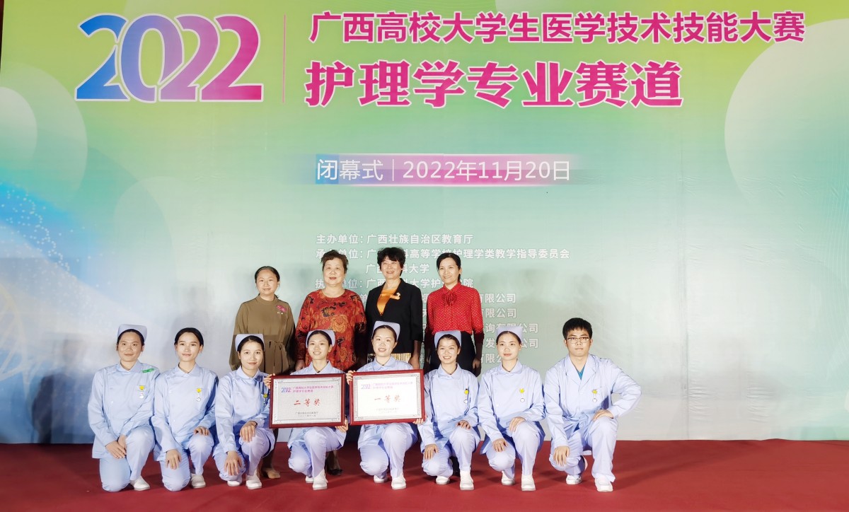 喜报——点点体育代表队在2022年广西高校大学生医学技术技能大赛(护理学专业赛道)比赛中荣获团体一等奖和二等奖