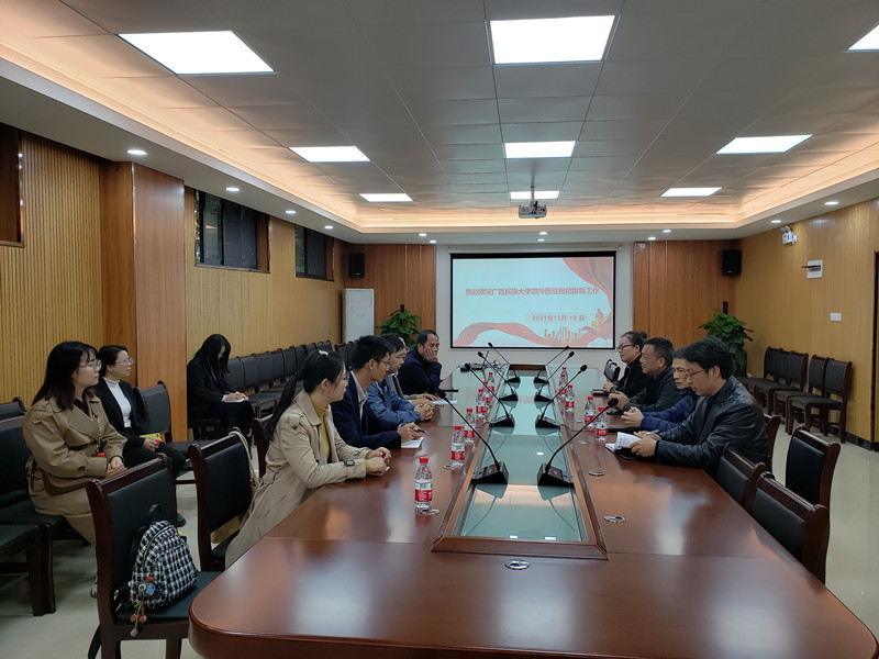 11 月19日上午,广西民族大学化学化工学院党委书记黄钦、院长谭学才带领教师代表和职能部门代表6人来点点体育后勤处调研实验室危险废弃物管理工作,后勤处处长冯第林、副处长黎锦源以及处办、校管科、水电科等相关工作人员接待了客人。