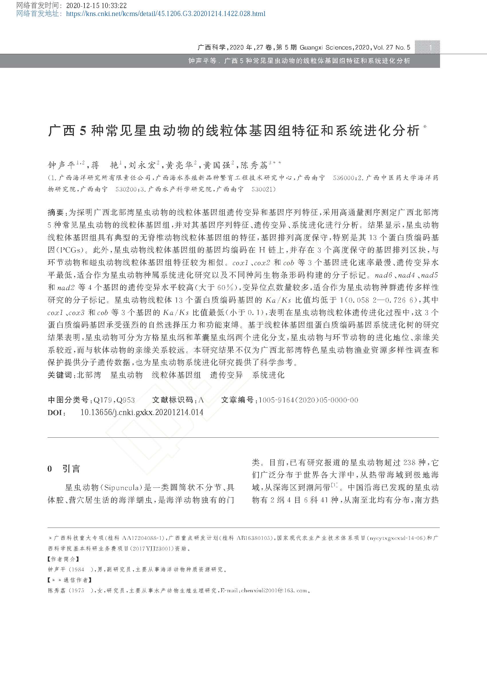 2020-广西5种常见星虫动物的线粒体基因组特征和系统进化分析