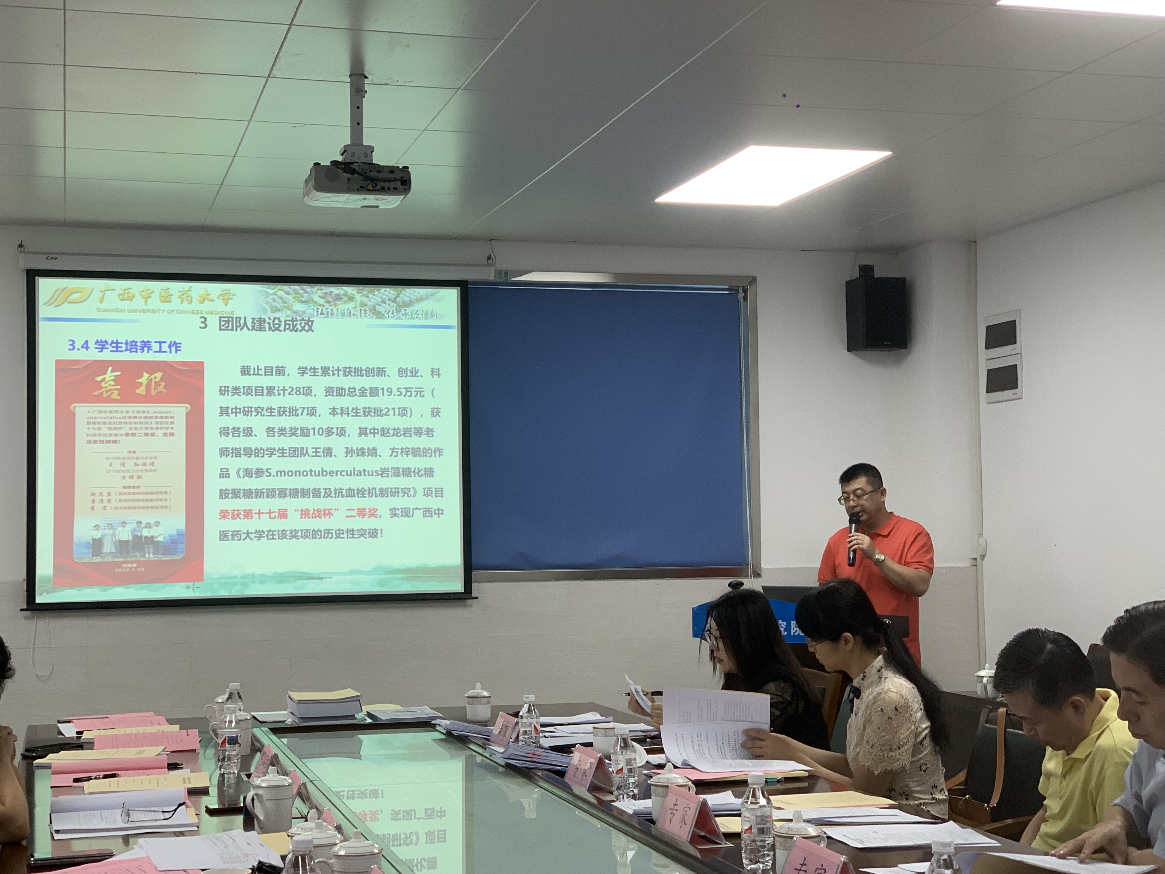 8月16日上午,受自治区科技厅委托,自治区经济社会技术发展研究所组织考核专家组到海洋药物研究院,对自治区第五批八桂学者刘永宏研究员及其团队进行中期考核实地核查。学校党委副书记庞宇舟出席汇报会议,八桂学者团队核心成员以及学校人事处、人才办、组织部、科技处、财务处、学科办、成果转化与社会服务处等职能部门负责人参加了会议。
