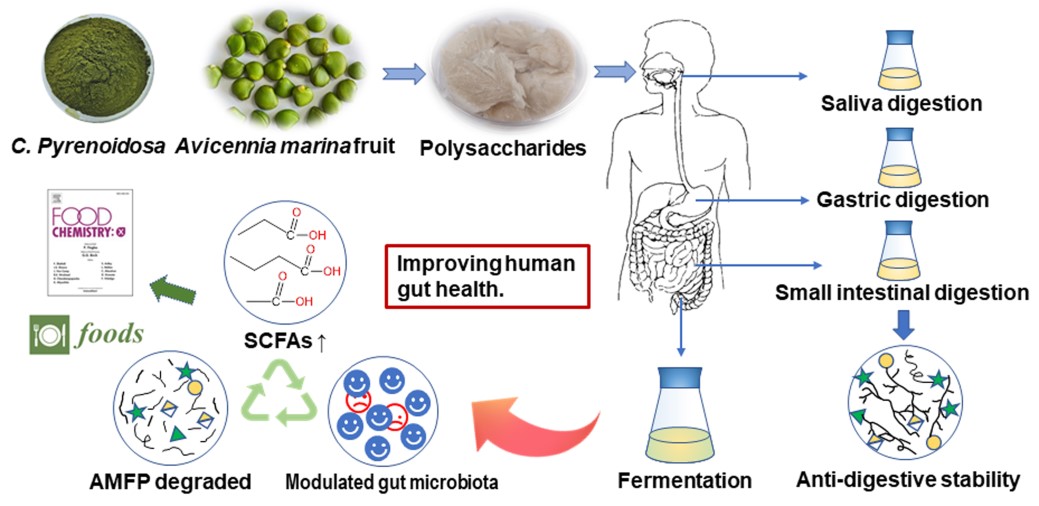 天然来源多糖及低聚糖具有良好的生物活性及益生功效,目前已有数种多糖和低聚糖如云芝多糖、菊粉(Inulin)、低聚果糖(FOS)、低聚半乳糖(GOS)、低聚木糖(XOS)、低聚乳果糖(LACT)、大豆低聚糖(SOS)等益生元产品愈来愈广泛地被应用于食品、药品等领域。海洋植物资源丰富,是结构新颖独特的糖类益生元的重要源泉。taptap点点体育海洋药物研究院海洋大健康产品开发研究室袁清霞博士长期从事海洋中药新颖多糖及低聚糖的发掘及功效评价研究,近期在海洋糖类新型益生元开发与利用方面取得进展。