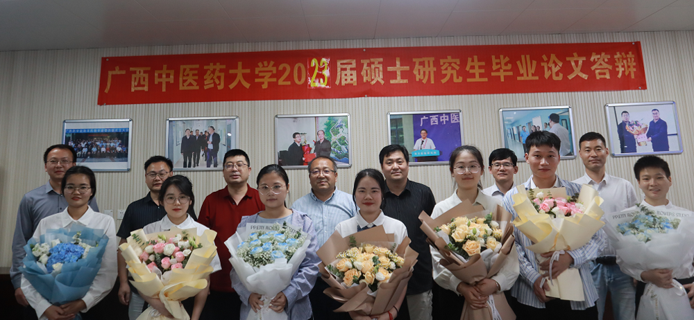 答辩者与答辩委员会成员合影。广西海洋药物重点实验室2023届硕士研究生学位论文答辩会圆满结束。