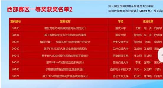 全国高校电子信息类专业课程实验教学案例设计竞赛(RIGOL杯)是由教育部高等学校电子信息类专业教学指导委员会、国家级实验教学示范中心联席会电子学科组和中国电子教育学会主办,竞赛采取“赛区初赛、全国复赛”方式,全国共划分北部、西部、中南部、东部4个赛区,将于11月中旬于南京大学进行决赛。
