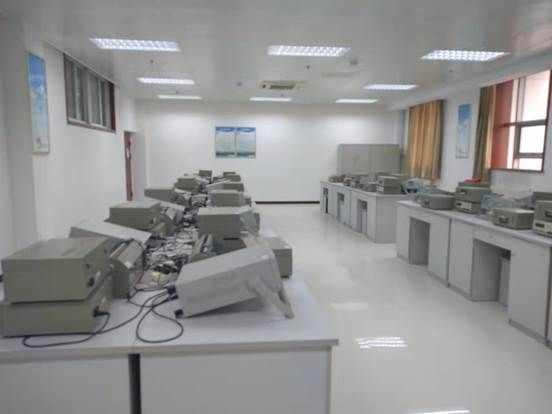 电子技术实验室面积约120平方米,共有数字电路实验箱、模拟电路实验箱、电路原理实验箱、稳压电源、数字示波器、交流毫伏表、信号发生器和数字万用表等仪器设备各25套,共约200余台。