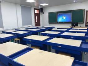 工程制图实训室建成于2011年,使用面积90平方米。主要承担工程管理、工程造价和建筑经济信息化管理等专业的《工程制图》、《工程结构》、《房屋建筑学》等相关课程的授课与实训教学任务。主要仪器设备有制图专用桌椅44套、西沃智能一体机2套,丁字尺100把,以及圆规、三角板、比例尺、绘图笔、擦图片等若干件,能够满足识图和绘图的实践教学需要。
