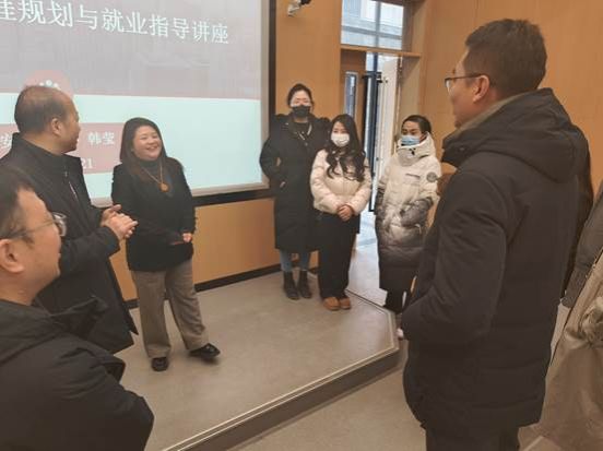 会后,韩莹老师与全体辅导员就如何有效指导学生如何逐步完善自身的职业生涯规划进行了深入交流,韩老师丰富的理论知识和实践经验得到了在场老师的阵阵赞赏!