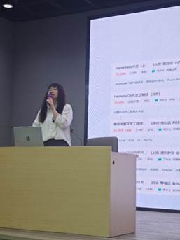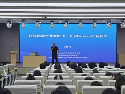 活动中,王鹏飞老师详细介绍了HarmonyOS的创新理念、技术特点以及广阔的应用前景,让在场师生对软件开发有了更深入的理解,也激发了师生们对HarmonyOS操作系统的学习热情。田苗老师向师生们展示了课程流程,强调HarmonyOS训练营将为学生们提供实战性的学习平台,帮助他们掌握软件的开发技能,为未来职业生涯打下坚实基础。