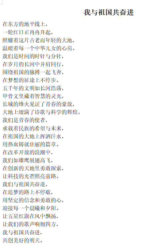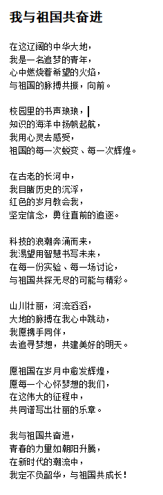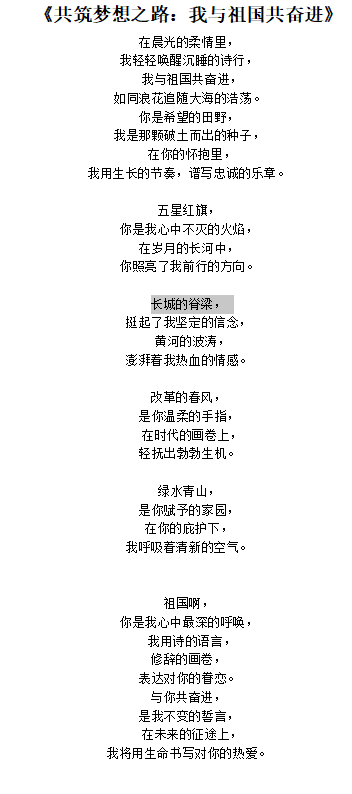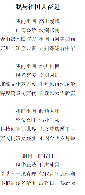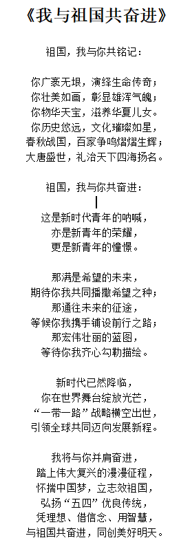 在时光的卷轴中,岁月如歌,历史的画卷波澜壮阔,在这片古老而又年轻的土地上,无数的华夏儿女,共同见证了祖国日新月异的变化。为进一步激发学生党员的爱国热情与民族自豪感,提升其爱国意识,大力弘扬爱国主义精神,做到自信自强、守正创新、踔厉奋发、勇毅前行。为此,信息工程学院党委组织开展“我与祖国共奋进”主题诗歌写作与朗诵活动。