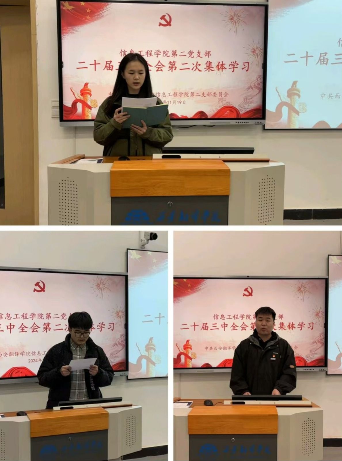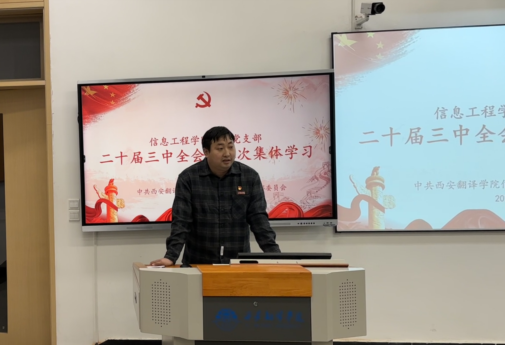 党的领导是进一步全面深化改革、推进中国式现代化的根本保证。为进一步深入学习贯彻党的二十届三中全会精神,做到深刻领会、准确把握全会精神的实质和丰富内涵。2024年11月19日,信息工程学院第二党支部于723T召开学习贯彻党的二十届三中全会精神专题学习会。会议由支部宣传委员李卫刚同志主持,支部全体党员、预备党员参加此次会议。