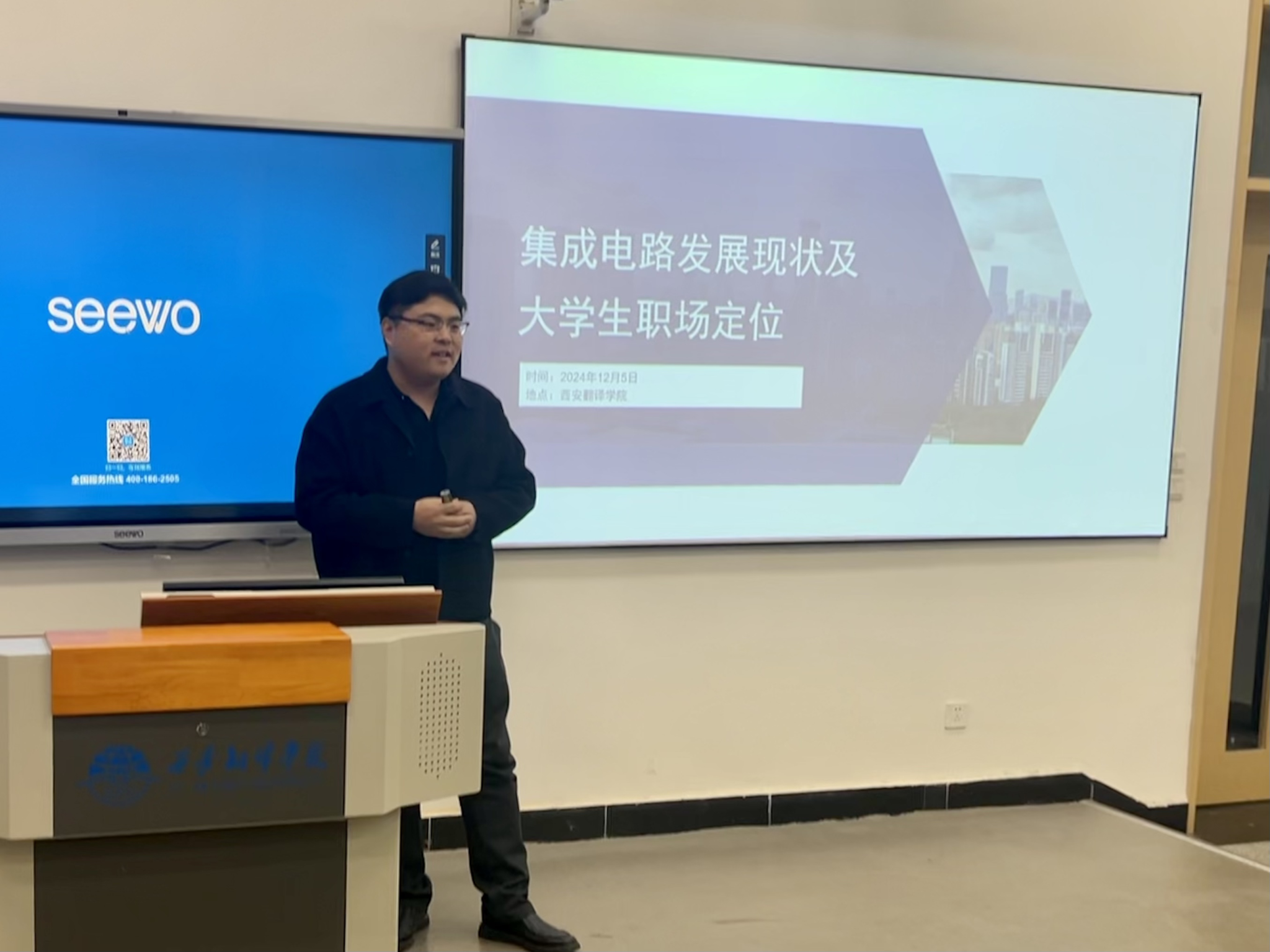2024年12月5日米兰milan官方网站信息工程学院邀请青岛青软晶尊微电子科技有限公司研发部工程师王瑞东开展主题为“集成电路技术的发展现状与未来趋势”科研学术讲座。本次讲座旨在为米兰官网电子信息科学与技术集成电路卓越班师生和对该方向感兴趣的全校师生,介绍集成电路专业方向前沿科技知识,助力他们在未来的学习和职业发展中更加明确方向。