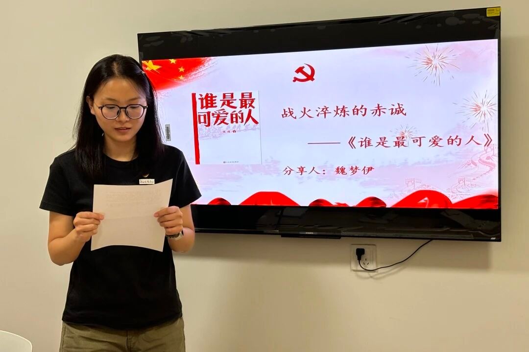 魏梦伊同志以“战火淬炼的赤诚”为主题,分享了《谁是最可爱的人》。她结合书中对志愿军战士英勇事迹的描写,讲述了在战火纷飞的年代,革命先辈们为了国家和人民舍生忘死的赤诚情怀,让大家深刻感受到志愿军战士的可爱之处与崇高精神。