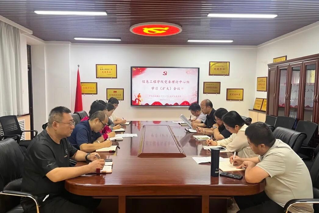 2025年9月11日,信息工程学院党委在党员活动室召开理论学习中心组学习(扩大)会议。会议由信息工程学院党委书记王珍同志主持,党委委员及各支部书记参会。