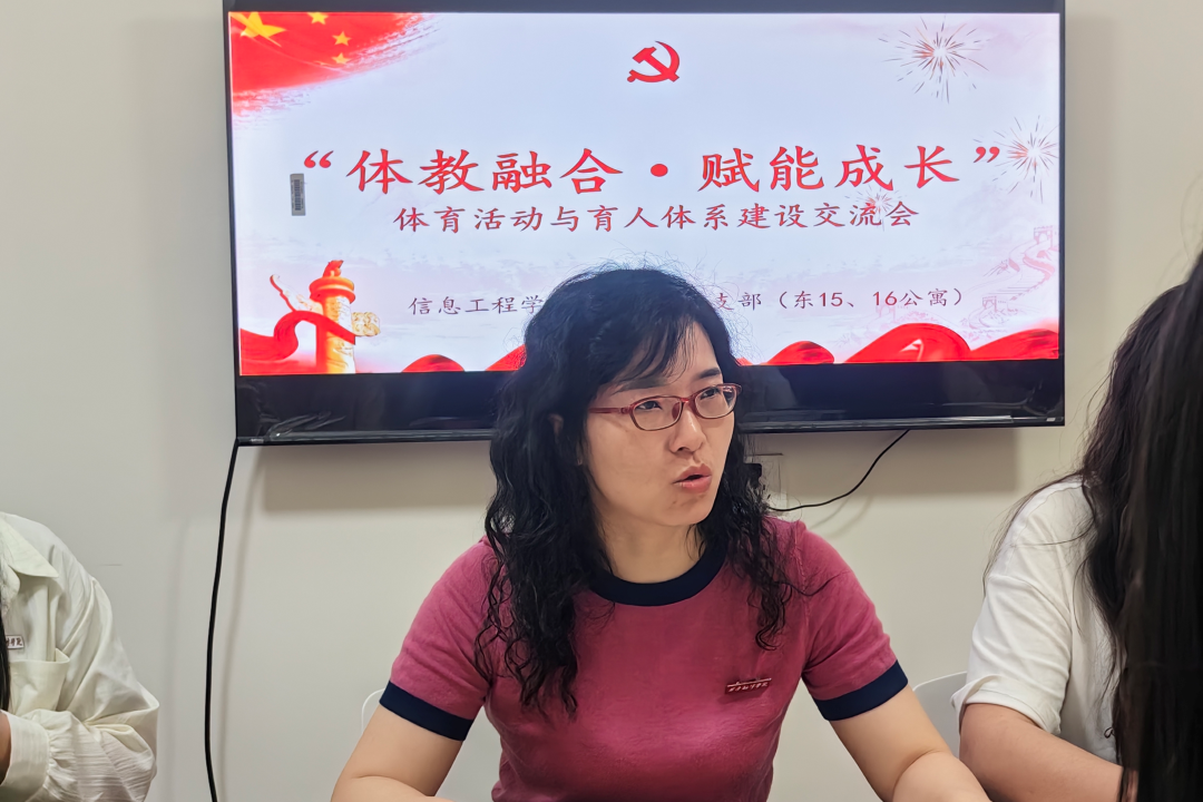 为进一步加强青少年体育锻炼、增强体质,响应国家号召,切实提升青年大学生的身体素质,大力培养团队协作精神,全力营造健康向上的校园氛围。6月16日,信息工程学院第一临时党支部开展“体教融合·赋能成长”体育活动与育人体系建设交流会。本次活动由第一临时党支部书记沈平利主持,东十五、十六公寓全体支部成员参加。