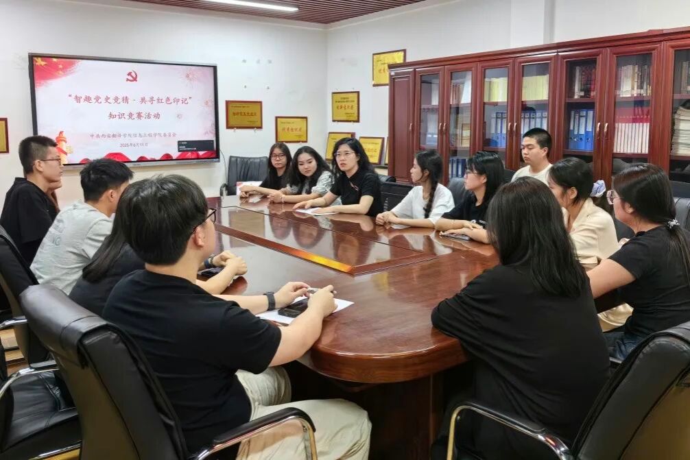 为引导学生党员了解红色故事,从红色文化中汲取精神力量,坚定理想信念,激发爱党爱国热情,让红色基因融入血脉、代代相承。2025年6月11日,信息工程学院党委在党员活动室组织开展“智趣党史竞猜·共寻红色印记”知识竞赛活动。本次活动由信息工程学院党委组织委员、党务干事沈平利同志主持。