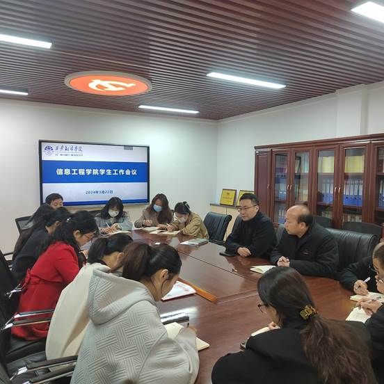 为扎实推进下一阶段学院各项学生工作顺利进行,信息工程学院于近日召开学生工作会议。学院党委书记、副院长赵桢宇、学工办主任王晓东、团总支书记王荣平以及全体辅导员老师参加此次会议。