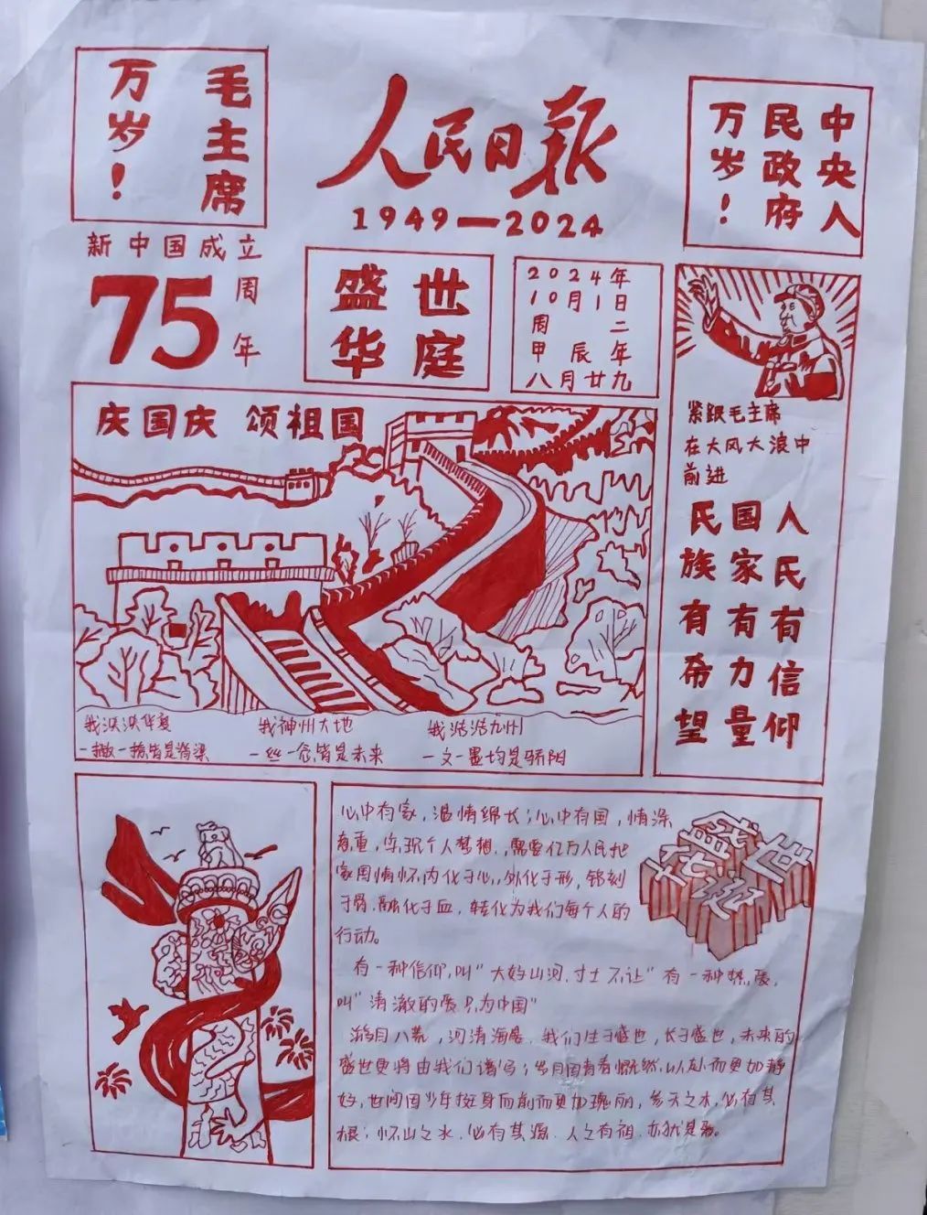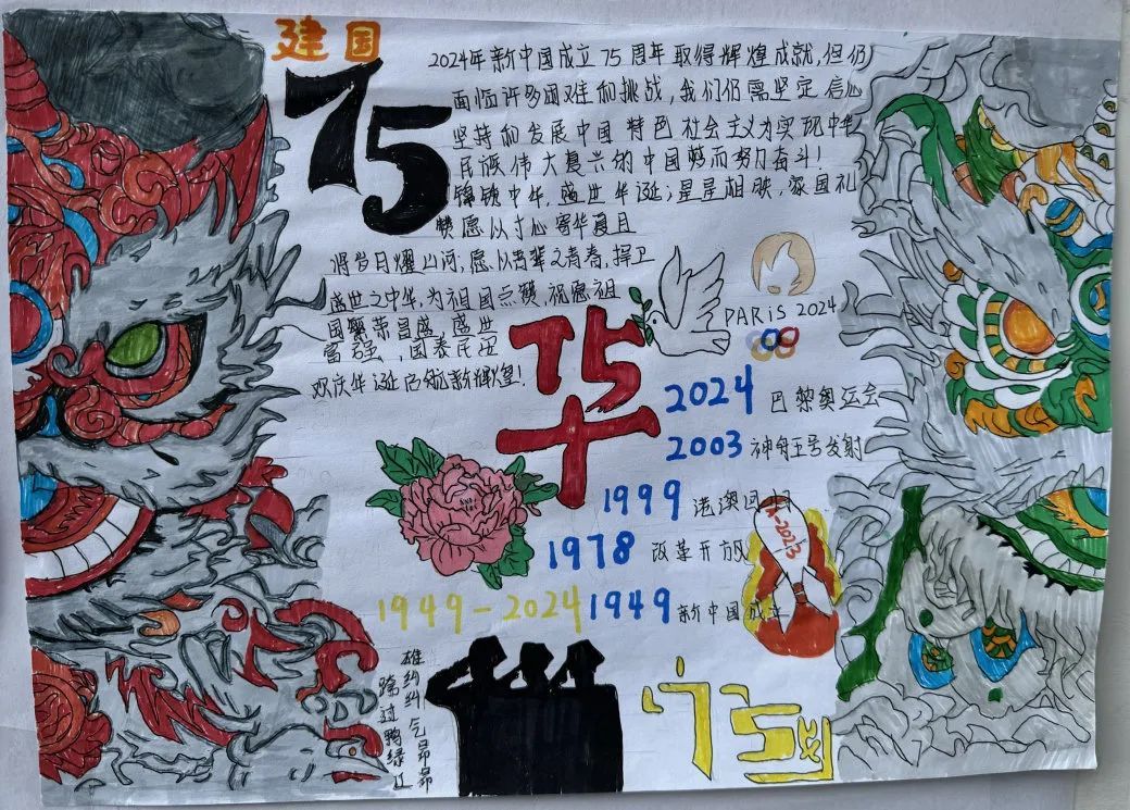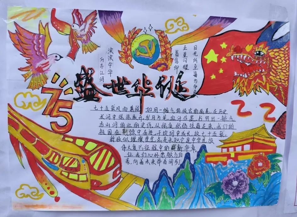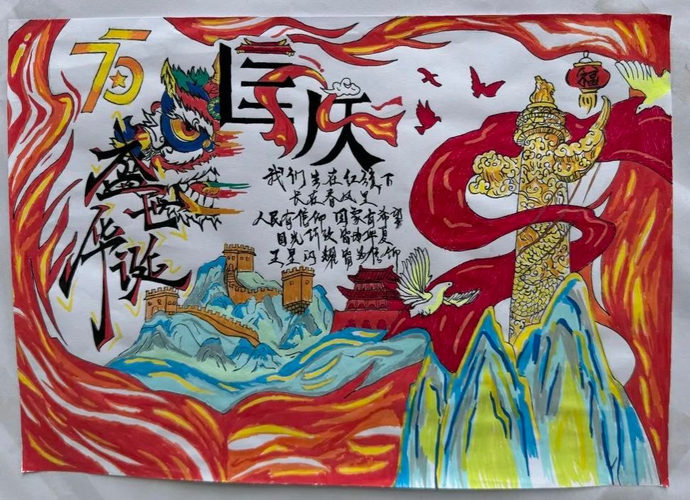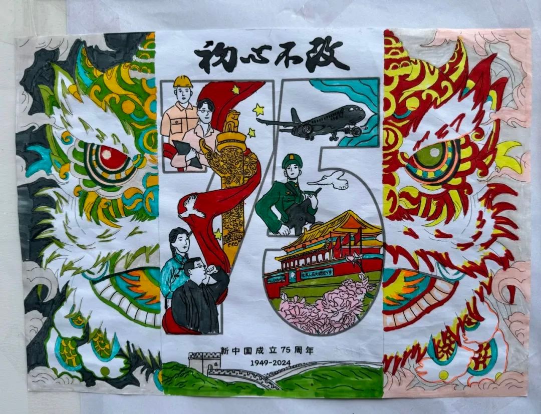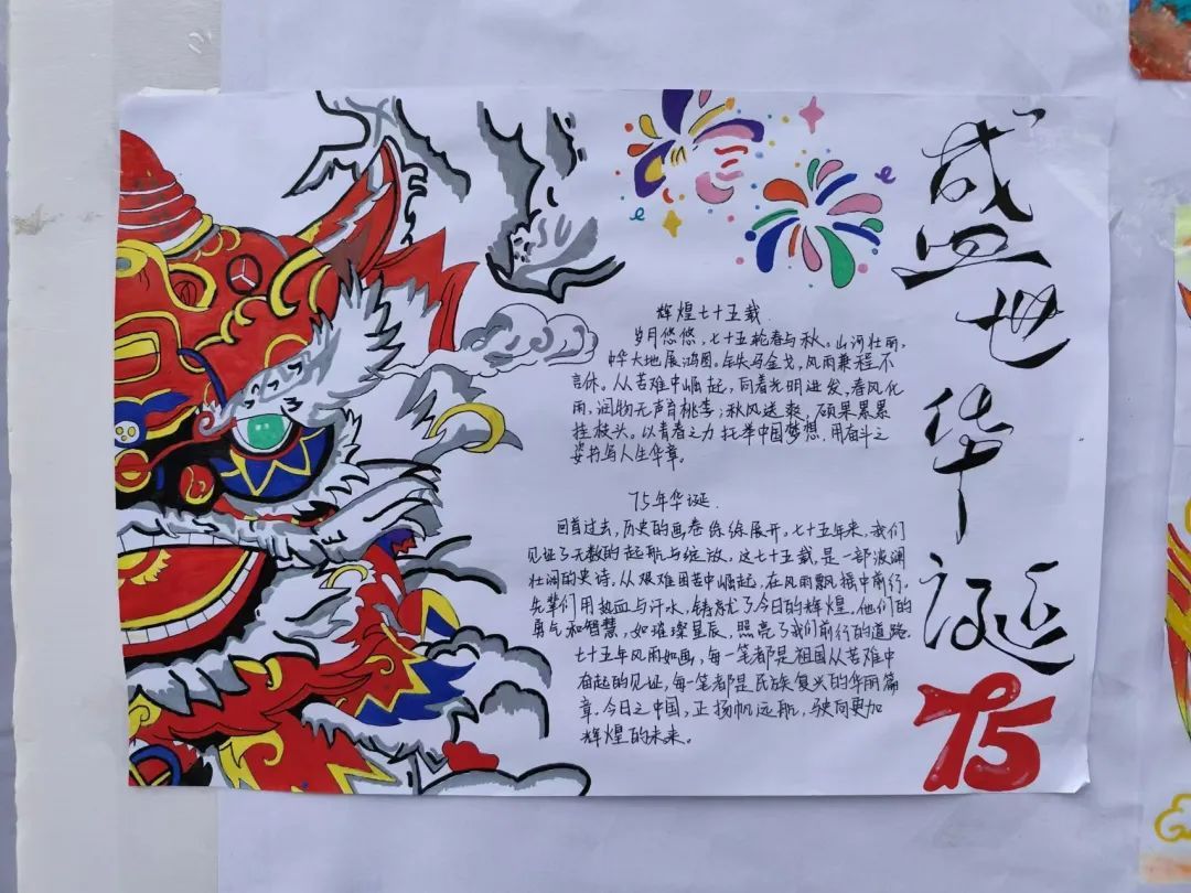 展示区征集了学生的优秀作品,围绕新中国成立75周年的海报、书法展示,生动直观地展现出国家的辉煌成就,激发出大家强烈的民族自豪感和爱国热情。