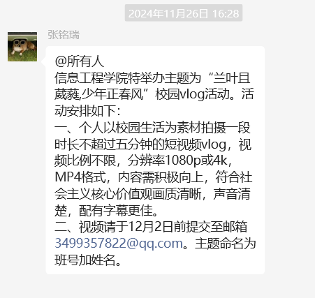 为了丰富校园文化生活,展现同学们的创意与风采,增进同学们之间的交流与互动。12月3日,信息工程学院学生会在学院会议室举办以“兰叶且葳蕤,少年正春风”为主题的校园vlog比赛。并由各部门负责人担任比赛评委。