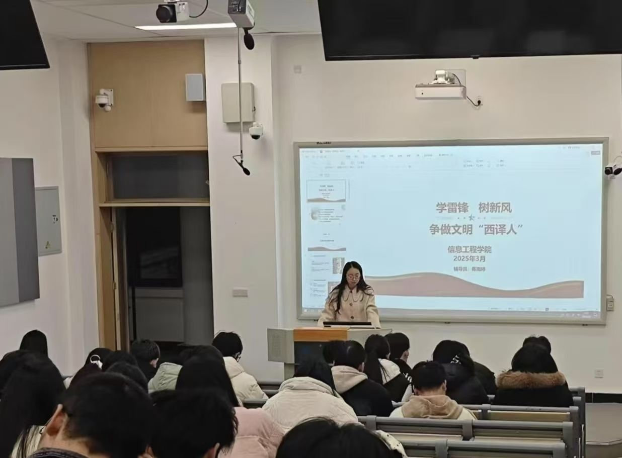 为弘扬雷锋精神,培育和践行社会主义核心价值观,营造文明和谐的校园氛围,信息工程学院各班召开了“学雷锋,树新风,争做文明西译人”主题班会。旨在通过学习雷锋事迹,引导同学们领会雷锋精神中蕴含的崇高理想信念、奉献精神、敬业精神。此次班会鼓励大家将雷锋精神融入日常生活,用实际行动传递爱心与温暖,努力成为有理想、敢担当、能吃苦、肯奋斗的新时代好青年,为构建文明和谐的校园贡献自己的力量,让雷锋精神在校园中绽放新的光彩。