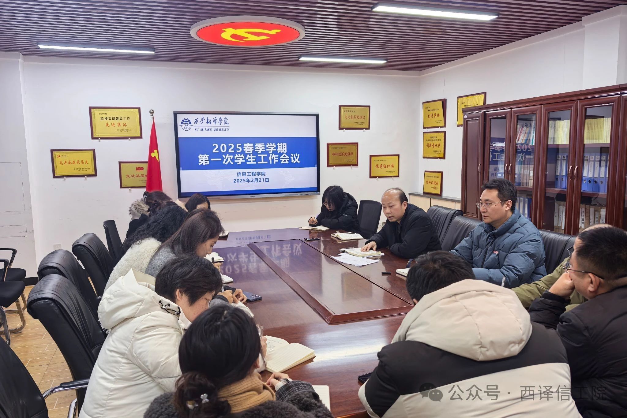 新学期,新气象。为确保新学期学生管理各项工作的顺利开展,信息工程学院于2月21日下午召开2025春季学期首次学生工作会议,院党委书记、副院长赵桢宇,综合办副主任王晓东及全体辅导员参会。