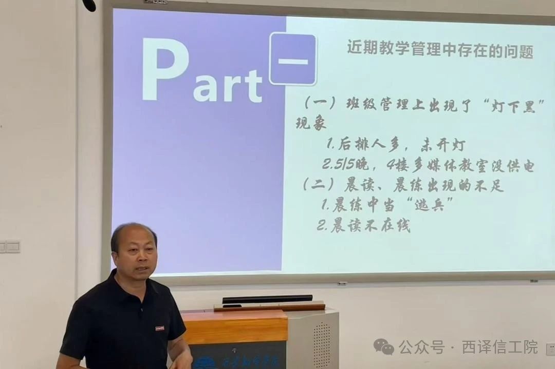 会上,王晓东指出近期教学管理中存在的问题:在班级管理方面,出现了“灯下黑”现象;晨读、晨练环节也存在不足,部分学生晨练当“逃兵”,晨读时人在心不在;他强调某班级在课堂上出现大面积学生不在线的情况,更要加强班级管理。此外,电信诈骗问题不容忽视,严重威胁学生财产安全。