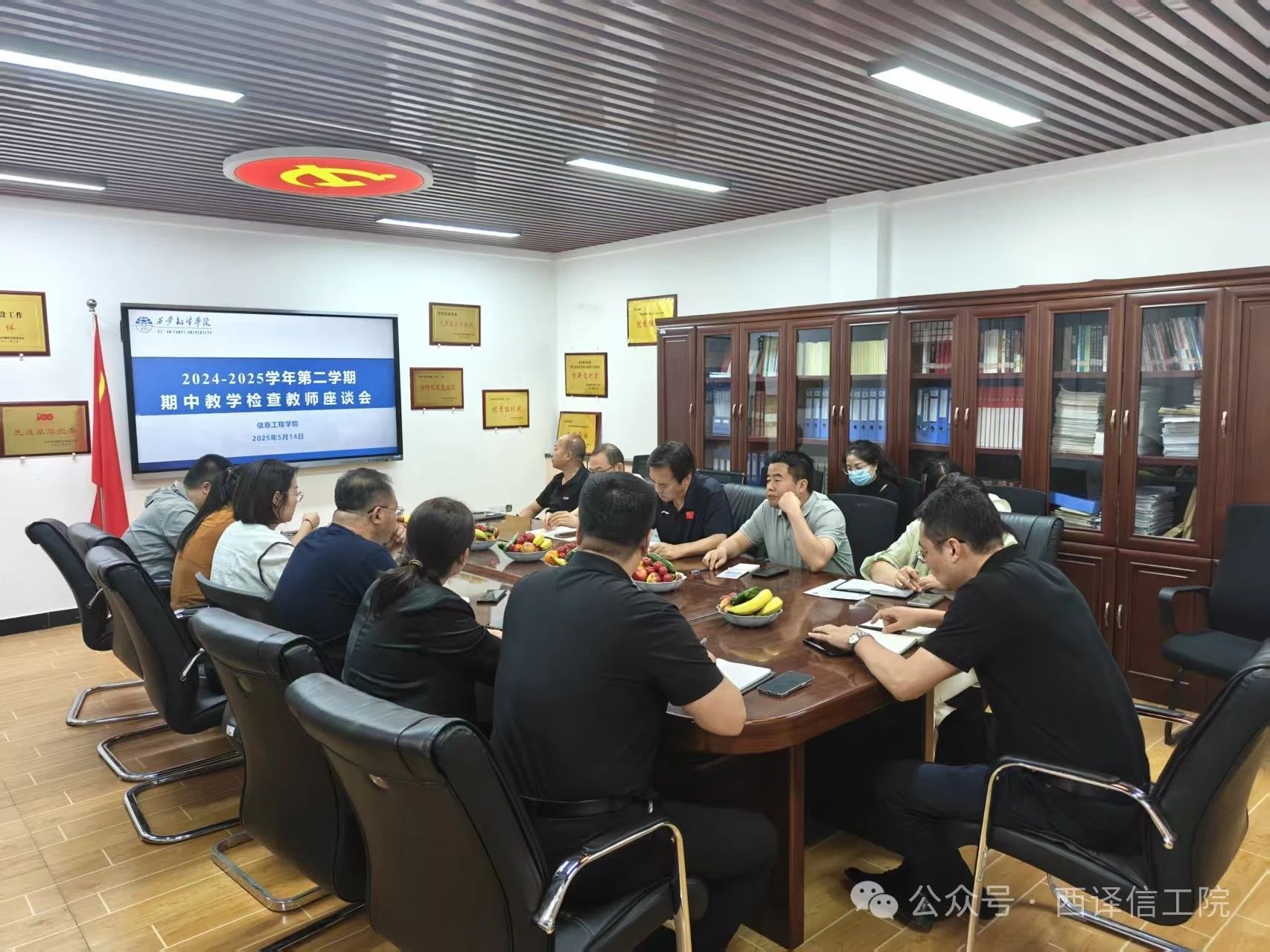 同时,为进一步畅通师生沟通渠道,全面了解学生学习生活需求,精准优化教育教学管理,持续提升人才培养质量,信息工程学院于当日下午在741T召开2024-2025学年第二学期期中教学检查学生座谈会,学院副院长王艳丽、尤国强,各系、中心主任以及2022-2024年级各班学生代表参加了会议。座谈会由学院综合办主任胡亚明主持。