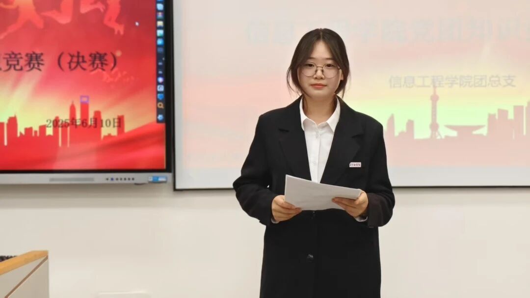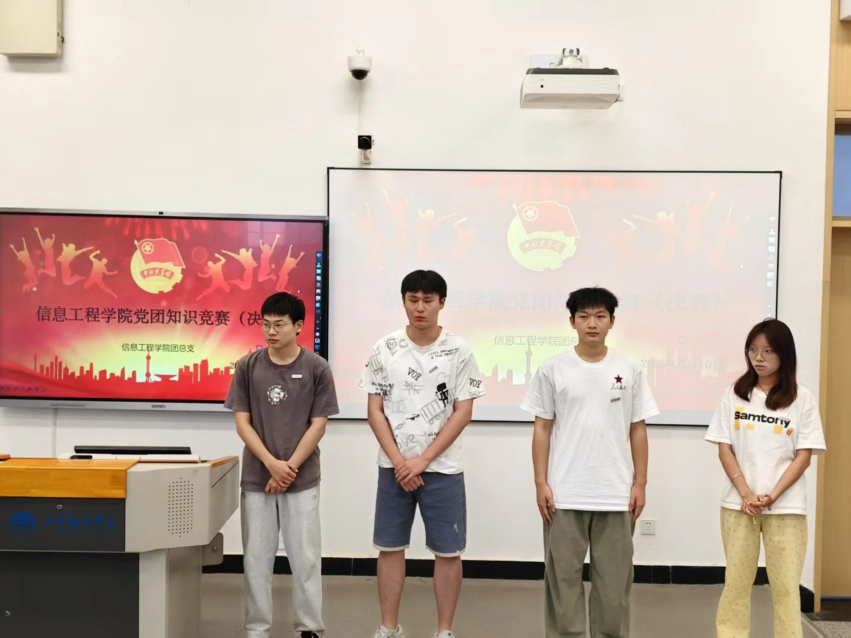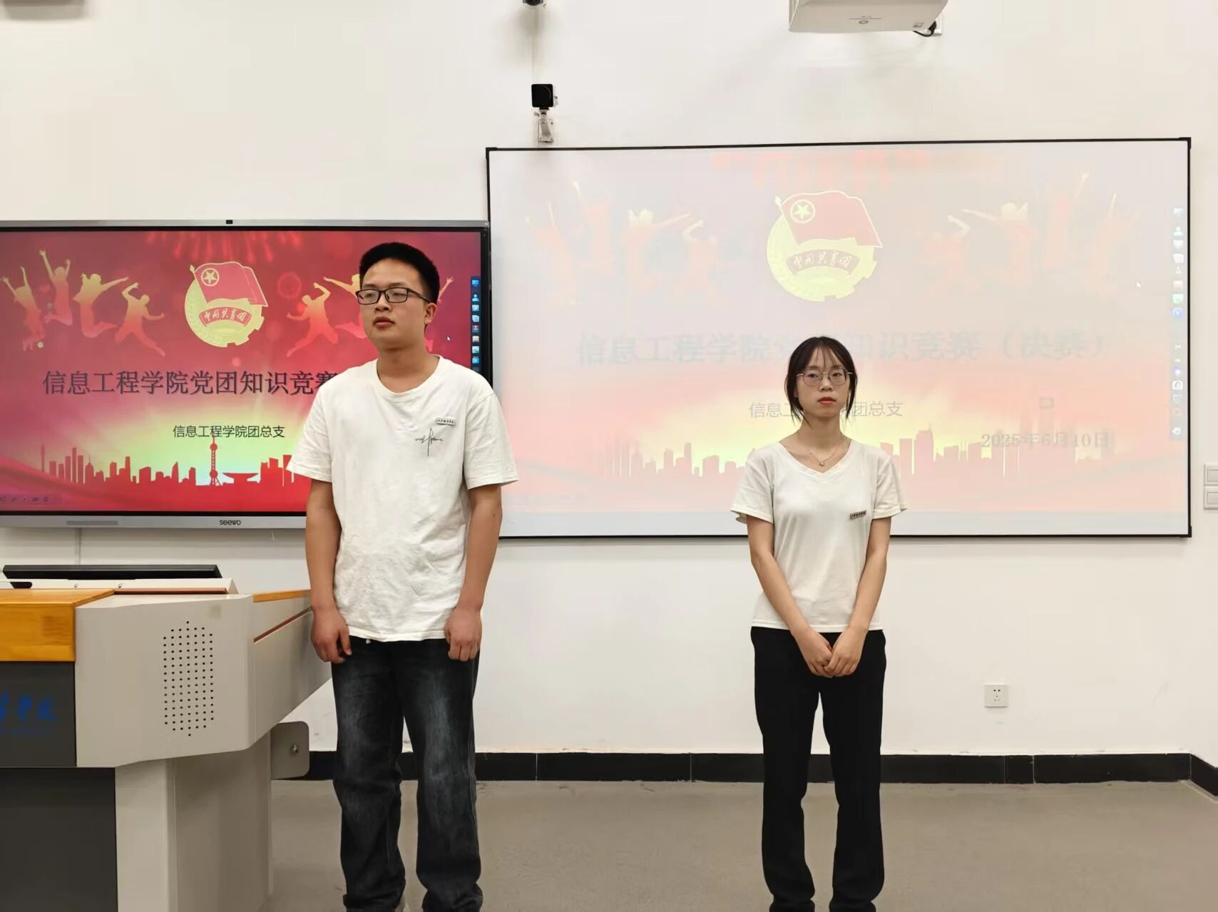 为深入学习贯彻党的二十大精神,提升青年思想政治素养,激发爱党爱国热情,信息工程学院团总支于2025年6月5日在742T、743T教室举行初赛,并于6月10日晚在731T举办决赛。团总支书记王荣平,学生副书记陆伊岚、李溪铫及64名参赛选手参加本次竞赛。