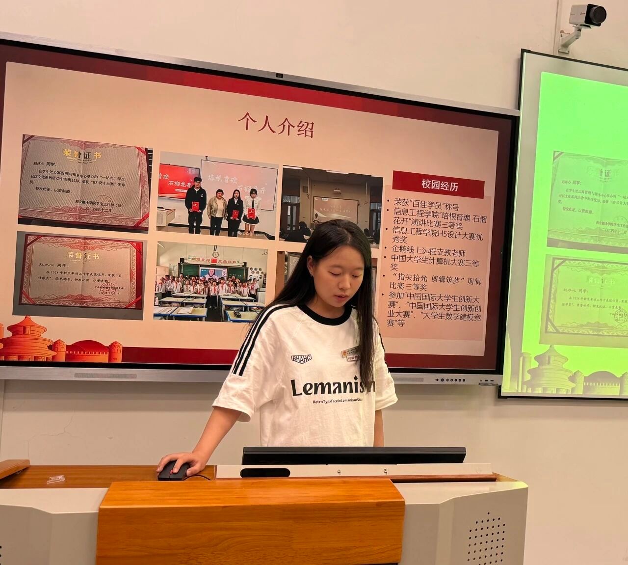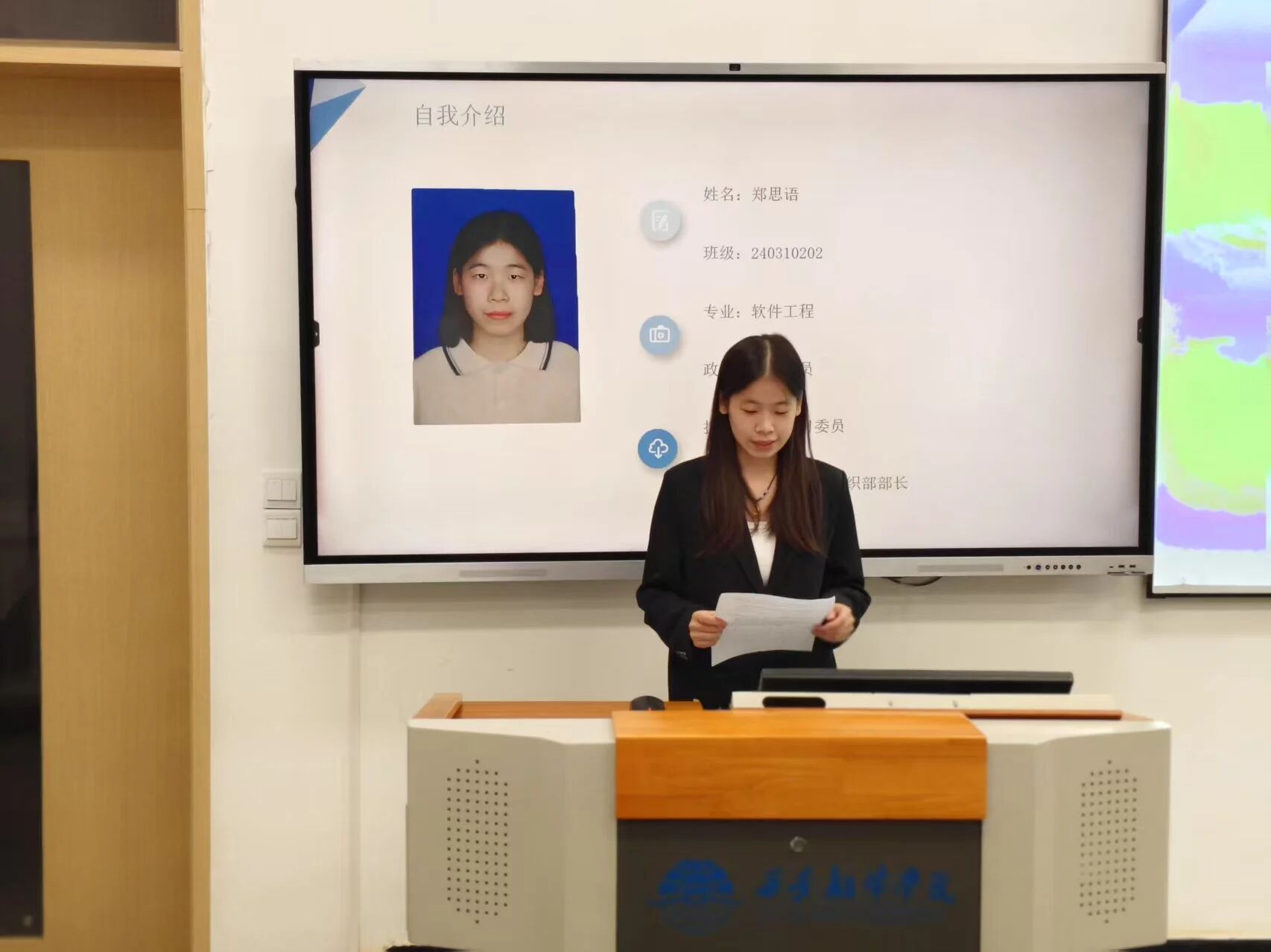 本次答辩会通过个人陈述、现场问答等环节,全面展现候选干部的综合素质,为学院学生工作队伍的梯队建设奠定了坚实基础。参与答辩的同学们按顺序上台展示。他们以充分的准备、昂扬的精神面貌和从容的自信,从个人履职情况、岗位认知、发展规划三个维度进行了全面陈述。