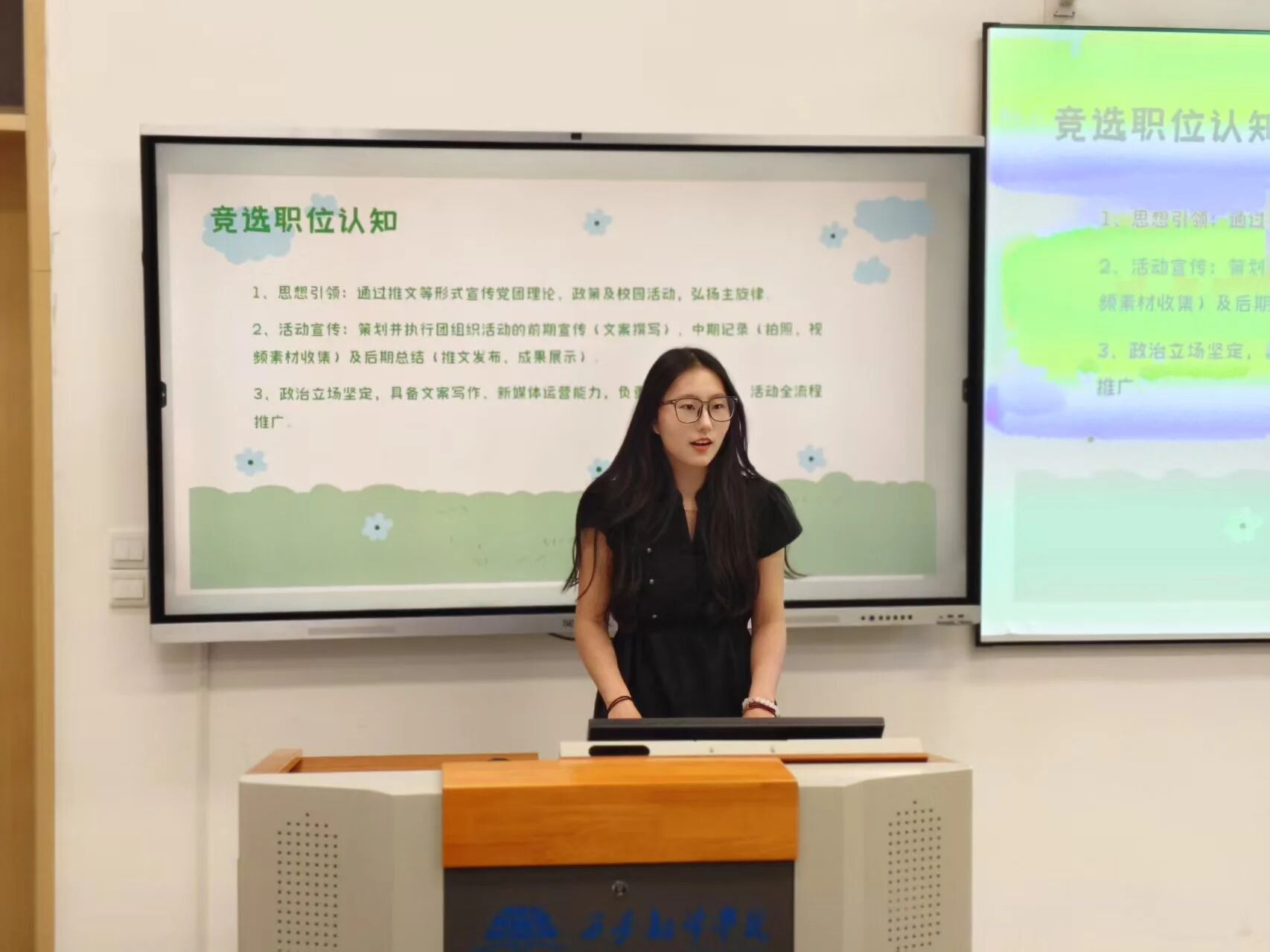 在答辩过程中,部分同学深情回顾了在团总支历练的点点滴滴,用生动的案例讲述了自己如何突破困境、与伙伴们携手成长的难忘经历;部分同学则立足部门职能,系统分析了岗位要求,凭借独到的见解提出了富有创意的优化方案;更有同学动情地表达了对团总支的热爱之情,表明了继续服务同学、助力学院建设的强烈意愿。