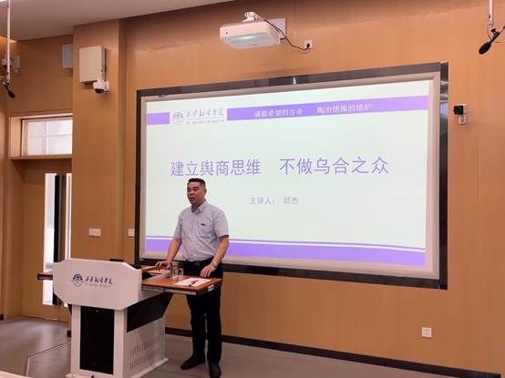 邱杰首先从舆论的定义、什么是乌合之众等方面入手,深入剖析了当前社会舆论的现状和挑战。讲座中,邱杰指出舆商思维是指个体在面对舆论时,能够理性分析、客观判断、有效沟通的一种能力。这种能力对于个人成长和社会发展都具有重要意义。在讲座中,邱杰还结合了大量实际案例,从舆论的形成、传播、影响等方面进行了生动的讲解。他强调,在面对舆论时我们应该保持冷静、客观、理性的态度,不被表面现象所迷惑,更不应该盲目跟风,成为乌合之众。