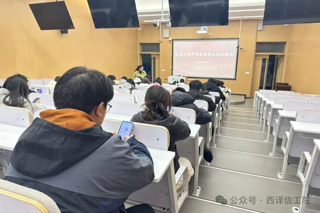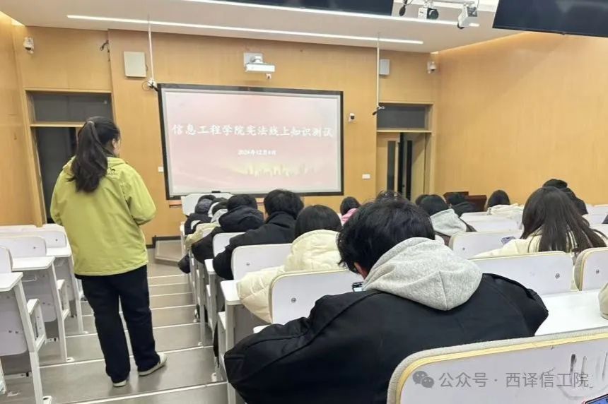 为认真学习贯彻党的二十大、二十届三中全会和全国教育大会精神,加强宪法法治教育,信息工程学院于12月4日19:00,在711T教室组织开展“弘扬宪法精神,维护宪法权威”线上宪法知识测试。通过答题,激发学生的学习热情,让宪法精神深入人心。