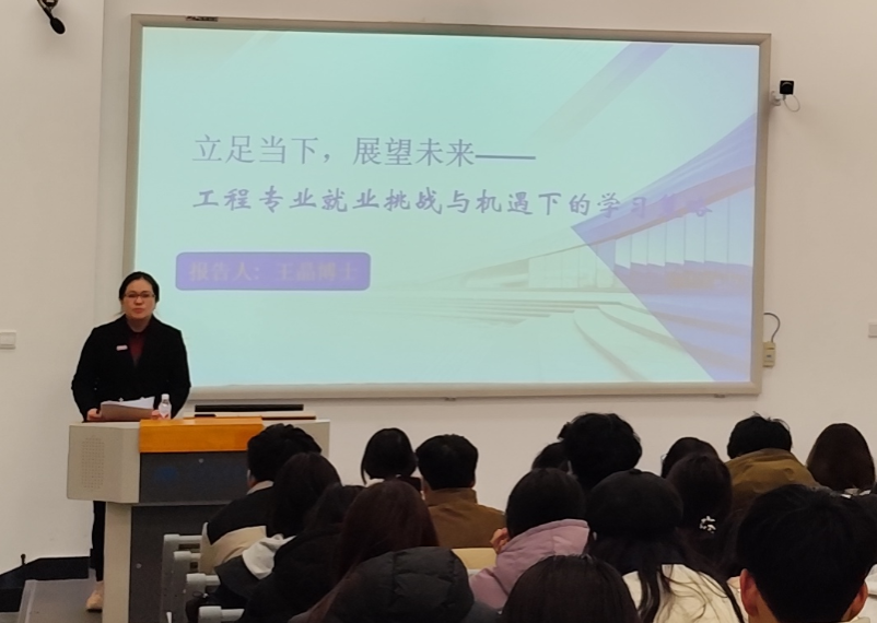 2025年3月4日,信息工程学院成功举办了一场主题为“立足当下,展望未来——工程专业就业挑战与机遇下的学习策略”的讲座。此次讲座由学院行业导师王晶博士主讲,工程管理、工程造价专业专任教师和2024级学生积极参与,共同探索工程专业的发展前景与学习策略。