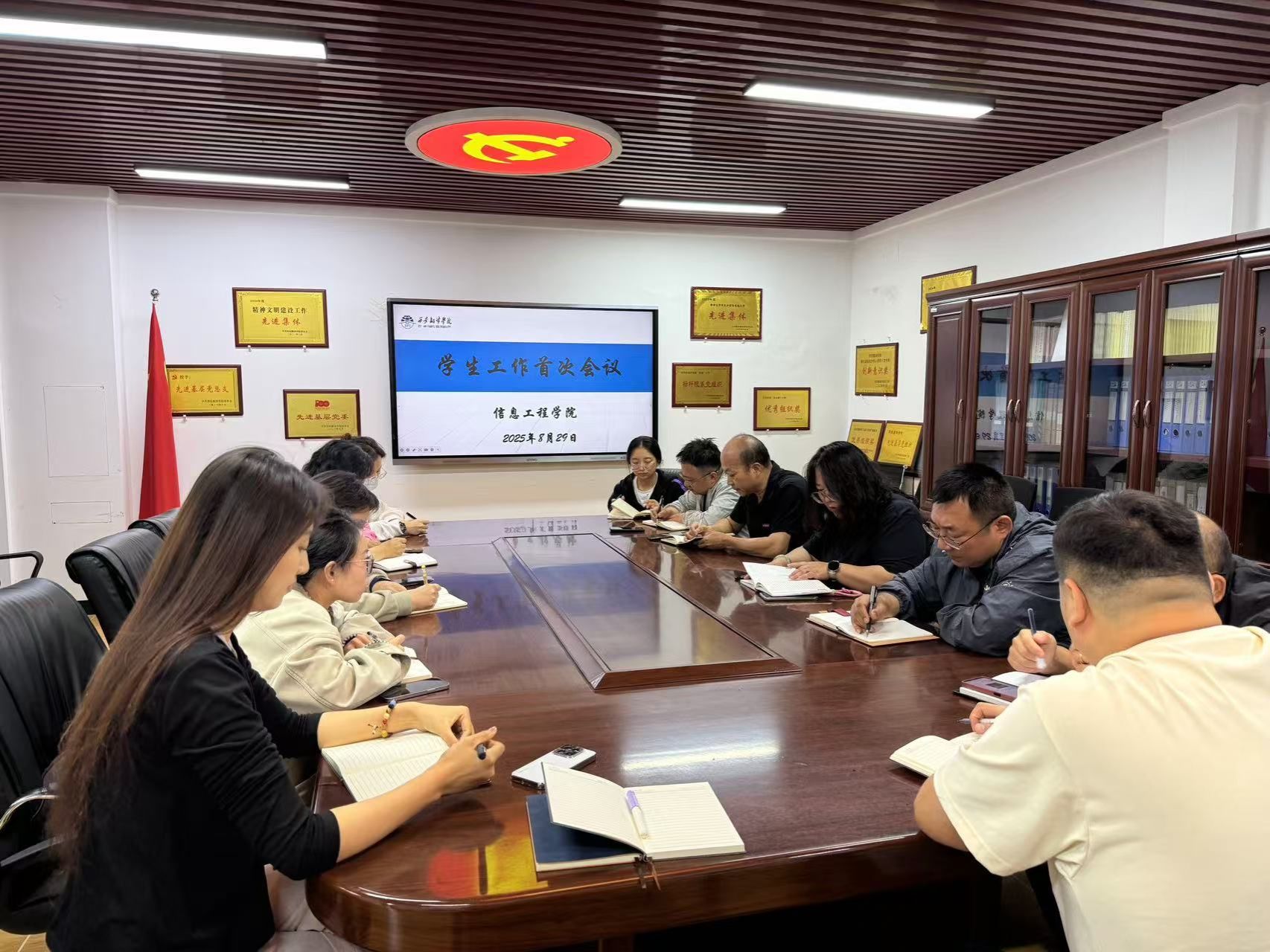8月29日上午,信息工程学院召开2025年秋季学期学生工作首次会议,专题部署新学期开学重点工作。学院党委书记、副院长王珍,综合办副主任王晓东,团总支书记王荣平及全体辅导员参会。