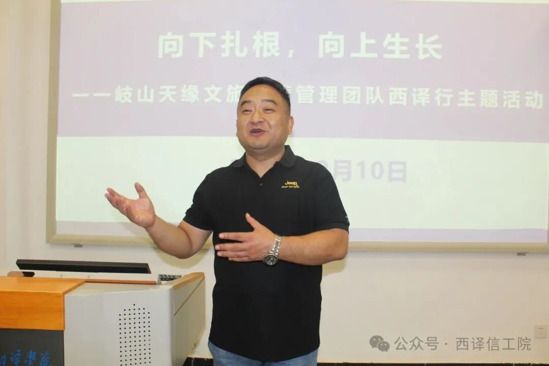 2025年9月10日,岐山天缘文旅团队在党支部副书记、董事长助理马伟刚的带领下,重返母校米兰milan官方网站,并于当晚19:00在722T教室,面向信息工程学院2023级学子开展“向下扎根,向上生长”主题活动。
