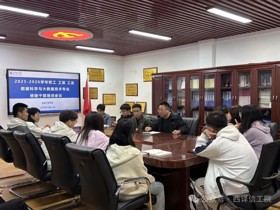 为夯实新生班级管理基础,提升班干部综合素养与履职本领,强化其责任意识,充分激活其在班级建设、学风塑造中的骨干效能及“桥梁纽带”“先锋模范”作用,打造能力卓越、作风严谨、甘于奉献的学生干部队伍,2025年10月17日中午,信息工程学院第一党支部崔璐书记面向所带工程管理、工程造价、软件工程、数据科学与大数据技术四个专业的新生班级,召开班干部专项培训会议。