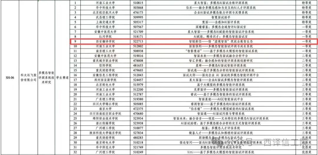 这是陕西民办高校在该赛事该组别中首次进入一等奖公示榜,实现历史性突破。团队核心成员由文鑫、张飞宇、张晓怡等 7 名同学组成,项目以突出的技术领先性和强实用性获得评审高度认可。