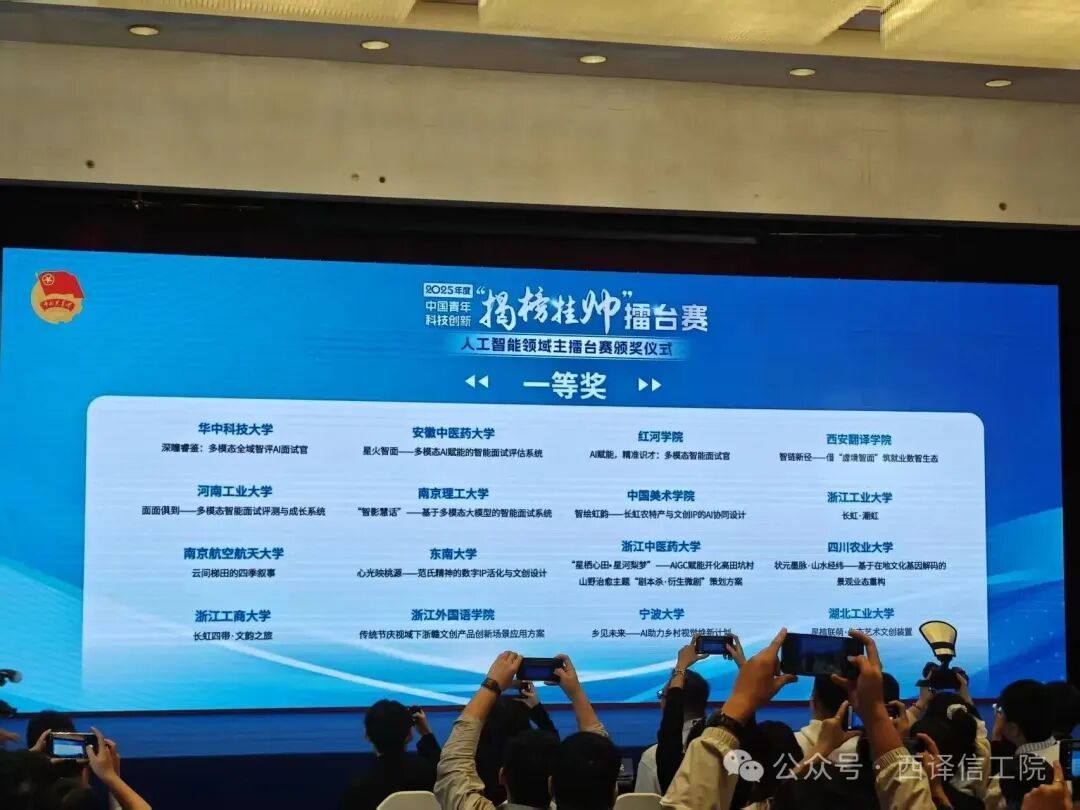 近日,2025 年度中国青年科技创新 “揭榜挂帅” 擂台赛 “人工智能领域” 终审主擂台赛在上海徐汇区落幕。信息工程学院的 “智眸识才”团队凭借 “智链新径借‘虚境智面’筑就业数智生态” 项目,从全国众多参赛队伍中突围,成功进入: