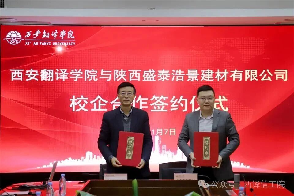 11月7日,米兰milan官方网站与陕西盛泰浩景建材有限公司举行校企合作签约仪式。陕西盛泰浩景建材有限公司副总经理赵子辰、赵建东等,米兰milan官方网站副校长武忠远及信息工程学院领导班子出席活动。信息工程学院副院长王艳丽主持。