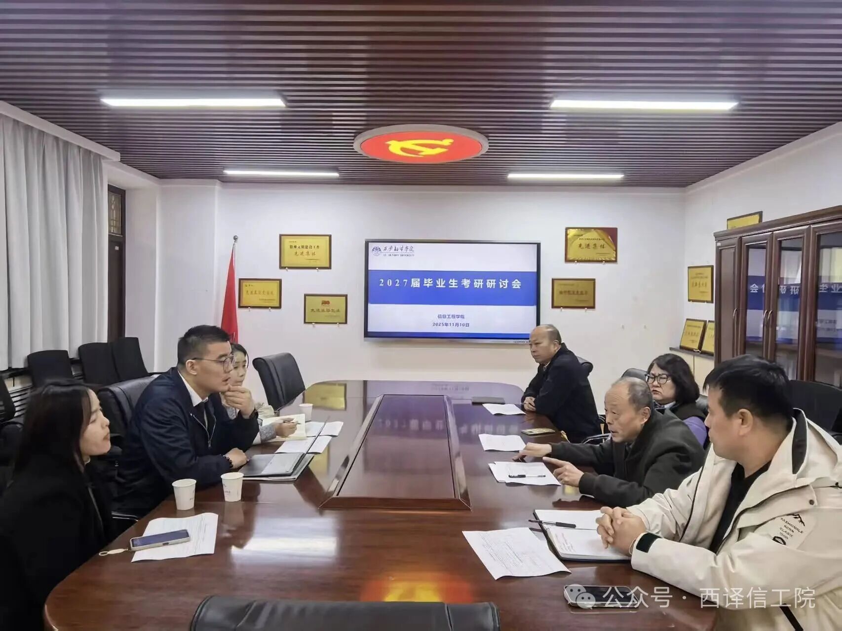 为深化人才培养工作并提升考研升学质量,信息工程学院与万学海文考研机构于11月10日在学院党员活动室共同召开了2027届考研研讨会。信息工程学院领导班子、西安科技大学高新学院代表出席了本次会议。
