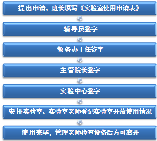 1.以班级申请的,请于每周一(或至少提前1天)由申请的班级班长填写《工程技术学院实验室使用申请表》;具体流程如下:
