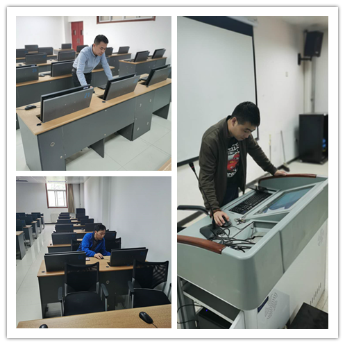 张春华、马昭、潘亮亮三位老师调试教学设备