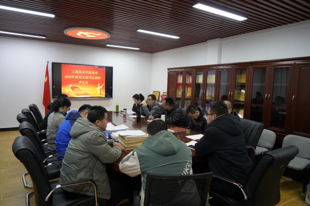 为落实校党委关于开展基层党建述职评议考核的相关要求,工程技术学院党委于2020年12月31日下午在党员活动室召开了2020年度党支部书记述职评议会以及党委理论学习中心组学习(扩大)会议。学院党委委员、各支部委员及党员代表参加了本次会议。会议由党委副书记赵桢宇主持。