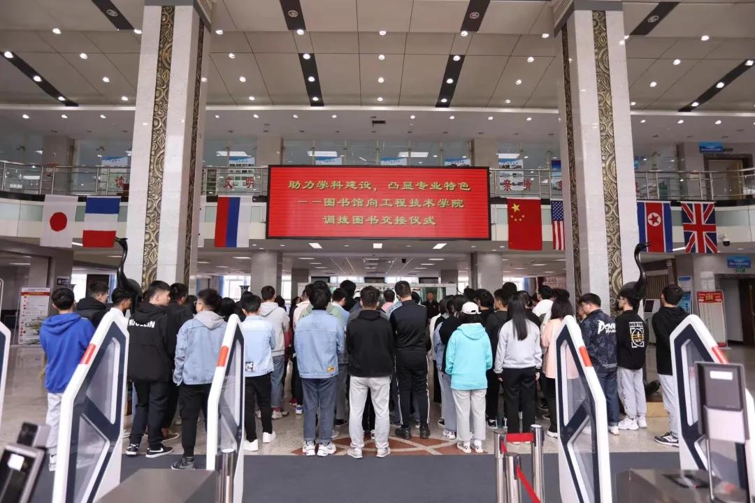 最后,裴世荷代表图书馆向工程技术学院院长葛海波交接了调拨图书。