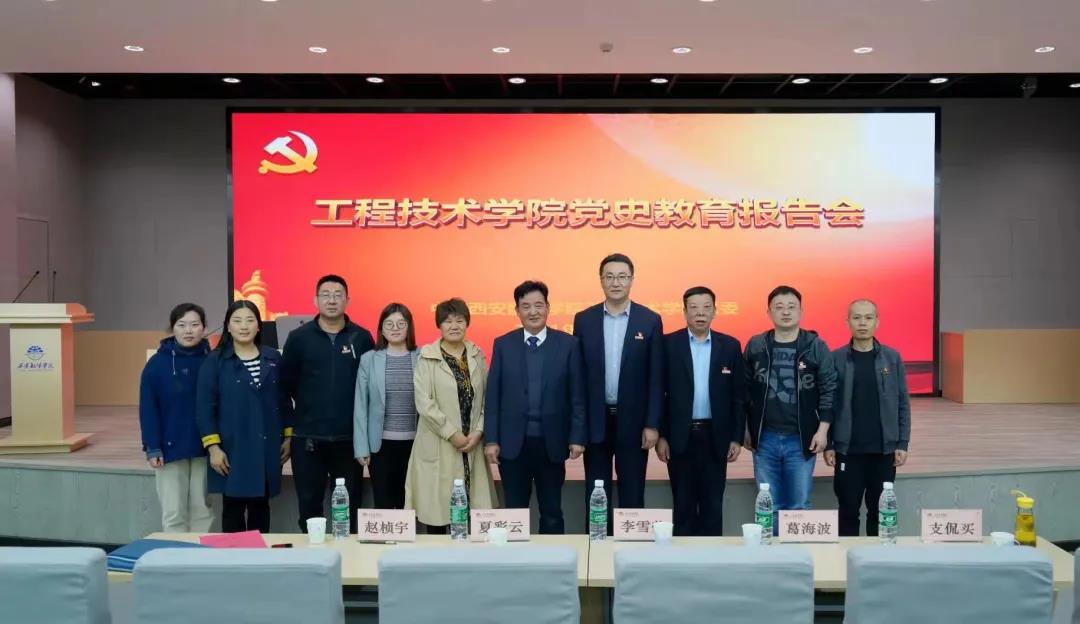 为深入贯彻落实习近平总书记在党史学习教育动员大会上的重要讲话精神,大力弘扬党的优良传统,开展党史学习教育,回顾中国共产党百年艰苦历程, 2021年4月28日下午15:30时,工程技术学院党委在图书馆报告厅顺利举办党史学习辅导报告会,报告会邀请陕西省委理论讲师团专家、陕西科技大学原党委宣传部部长颜毓洁教授为各位同志进行学习辅导,参加此次报告会的嘉宾还有陕西科技大学经济管理学院夏彩云教授,米兰milan官方网站党委组织部部长李雪莹老师,米兰milan官方网站工程技术学院葛海波院长,支侃买副院长和全体科级干部,工程技术学院全体党员师生和积极分子代表参加报告会。报告会由工程技术学院党委副书记赵桢宇同志主持。