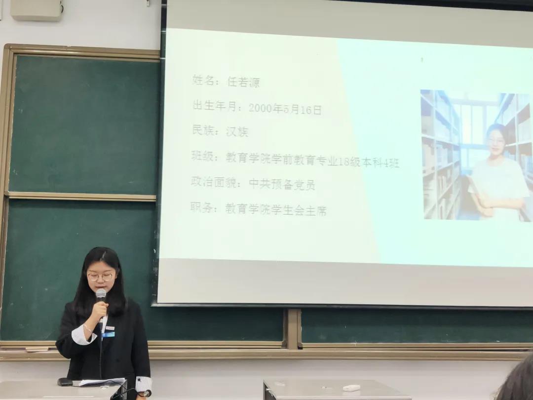 最后,十佳主席教育学院任若源带来了经验分享。她作为教育学院学生会主席,积极参加各类校园文化活动。从各种工作中产生的感想和经验,都是自身成长最宝贵的财富,同时也学会了真诚做事,真心对人的道理。