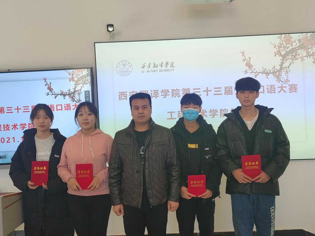 本次比赛选手紧紧围绕社会现象、中国故事、校园生活等竞赛题目展开命题演讲。在短短三分钟的命题演讲时限内,每个选手都努力在有限的时间内尽可能地给观众留下最深刻的印象;参赛选手有理有据、用事实和论证说服观众;富有激情,抑扬顿挫的语音语调吸引了听众的注意力。选手们精彩的演讲和才艺展示不断博得老师和同学们的热烈掌声,现场气氛活跃。评委老师从内容、表达、举止、表现力等多方面为选手现场打分,最后评选出一等奖、二等奖、三等奖共7名同学,工程技术学院党委副书记、行政副院长赵桢宇和综合办主任胡亚明老师分别上台为获奖选手颁发奖状。