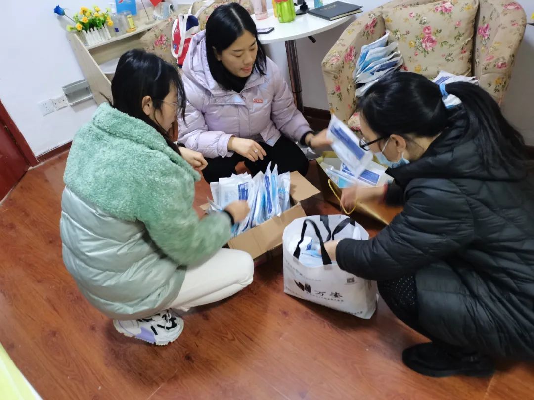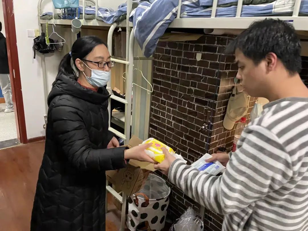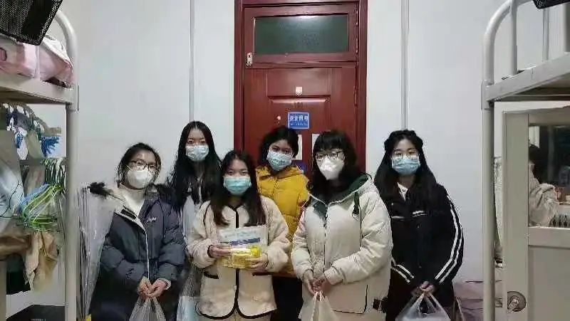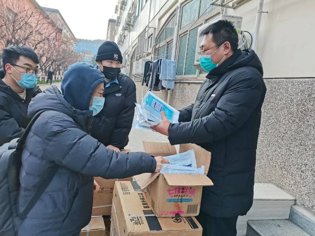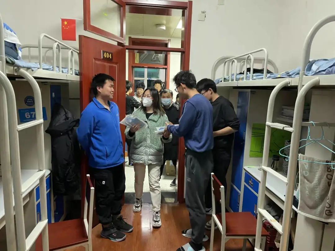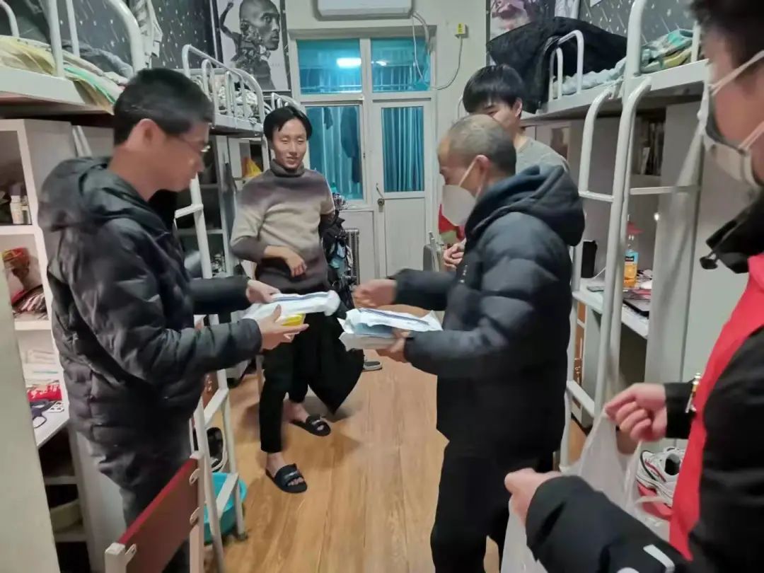 12月31日晚,工程技术学院党委副书记、行政副院长赵桢宇,团总支书记王荣平和辅导员老师们一行来到工程技术学院所辖学生宿舍,逐一为同学们送上防护口罩和消毒湿巾。