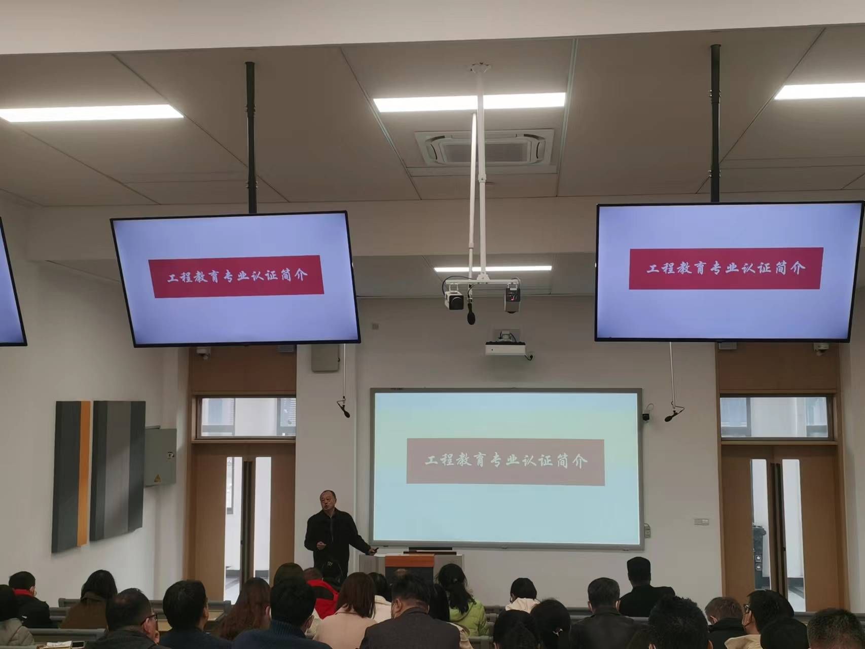 接着,由院长葛海波做关于启动工程教育专业认证的意义和作用的报告。葛院长谈到,专业刚刚起步,各专业老师对专业认证的相关概念和相关的要求很基础。对此他从认证是什么,为什么要做专业认证,以及专业认证要做什么,葛院长在此三方面做出解释。